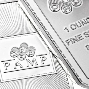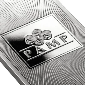 Each 1 oz PAMP Suisse Silver Bar is highlights frosted elements against reflective backgrounds, adding to their visual appeal. A notable feature is the USA mint mark on the obverse, signifying the bars origin in Florida. Additionally, the obverse incorporates micro-text engraving of the word “PAMP” along the outer edge, alternating between right-side-up and upside-down orientations for authentication purposes.