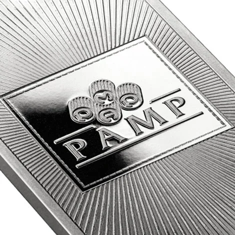 The reverse side presents the renowned PAMP name and logo, set against a field of intricate micro-ridge lines that create stunning light-refracting effects.