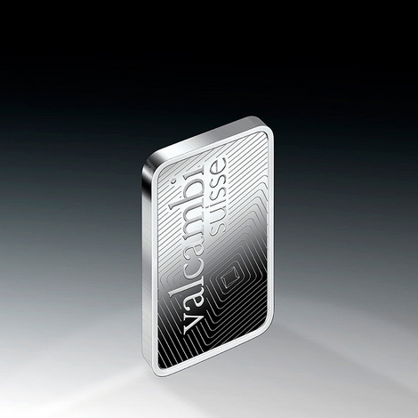 A 100 Grams bar of silver by leading Swiss refiner Valcambi. This bar comes supplied with a serial number and certificate in a handy credit-card sized package.