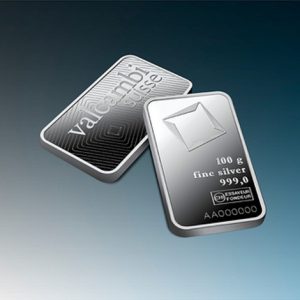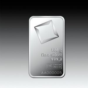 Pure silver content – 100g A 100 Grams bar of silver by leading Swiss refiner Valcambi. This bar comes supplied with a serial number and certificate in a handy credit-card sized package.